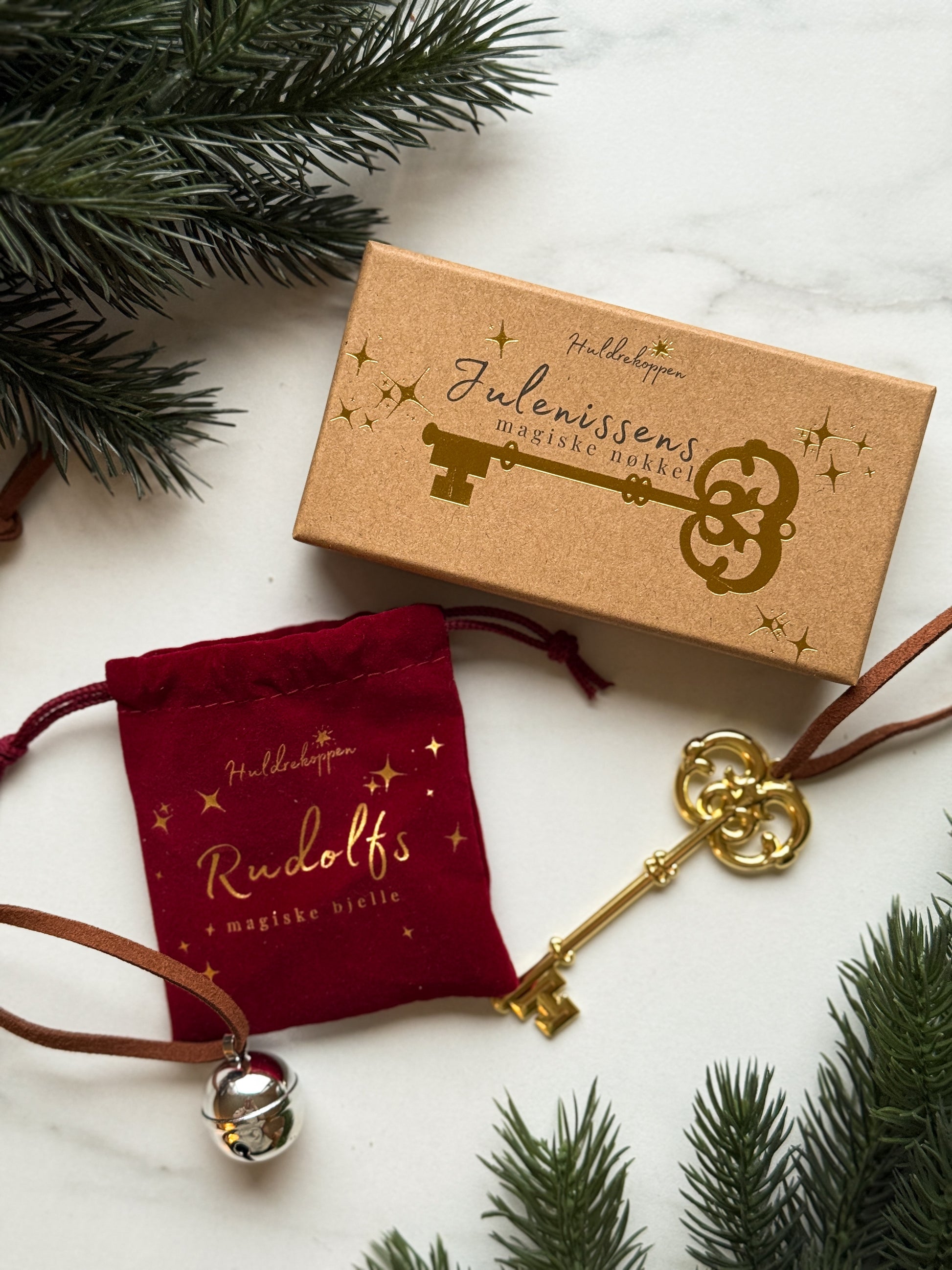 I tillegg får du Julenissens magiske nøkkel og Rudolfs magiske bjelle. Rekvisittene kan brukes for å gjøre historiene fra Husnissen enda mer magisk og levende, men er like fin som julepynt på juletreet eller på barnerommet.